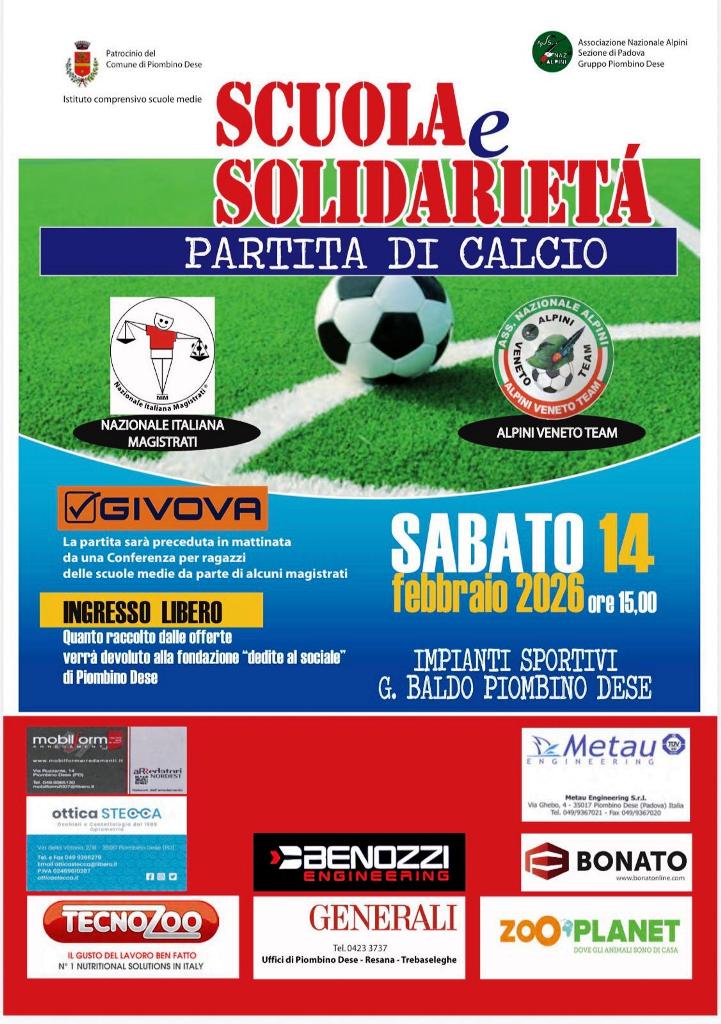 | 14/02/2026 | Piombino Dese (PD) | Alpini Veneto Team | Partita abbinata ad un incontro con gli studenti sulle tematiche della Legalità locandina |